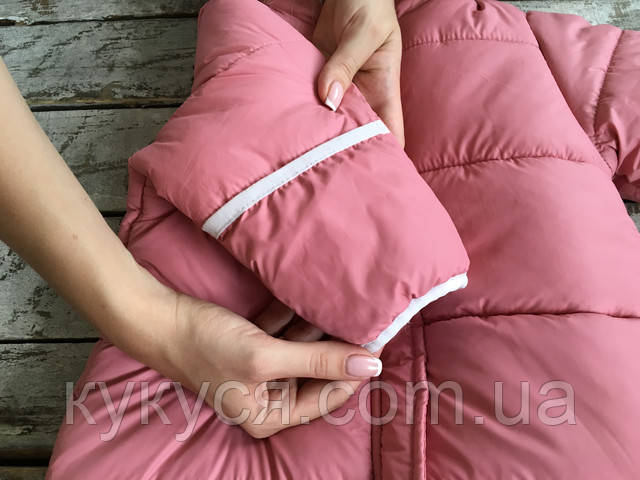 Капюшон. Это изюминка конверта! Конечно же он отстегивается и крепится молнией. Капюшон декорирован опушкой из натурального меха. Она то и не даёт спокойно жить нашей "хочушке" в груди. А ещё такой капюшон прячет личико малыша от ветра и не дает маленьким девочкам и мальчикам замёрзнуть.